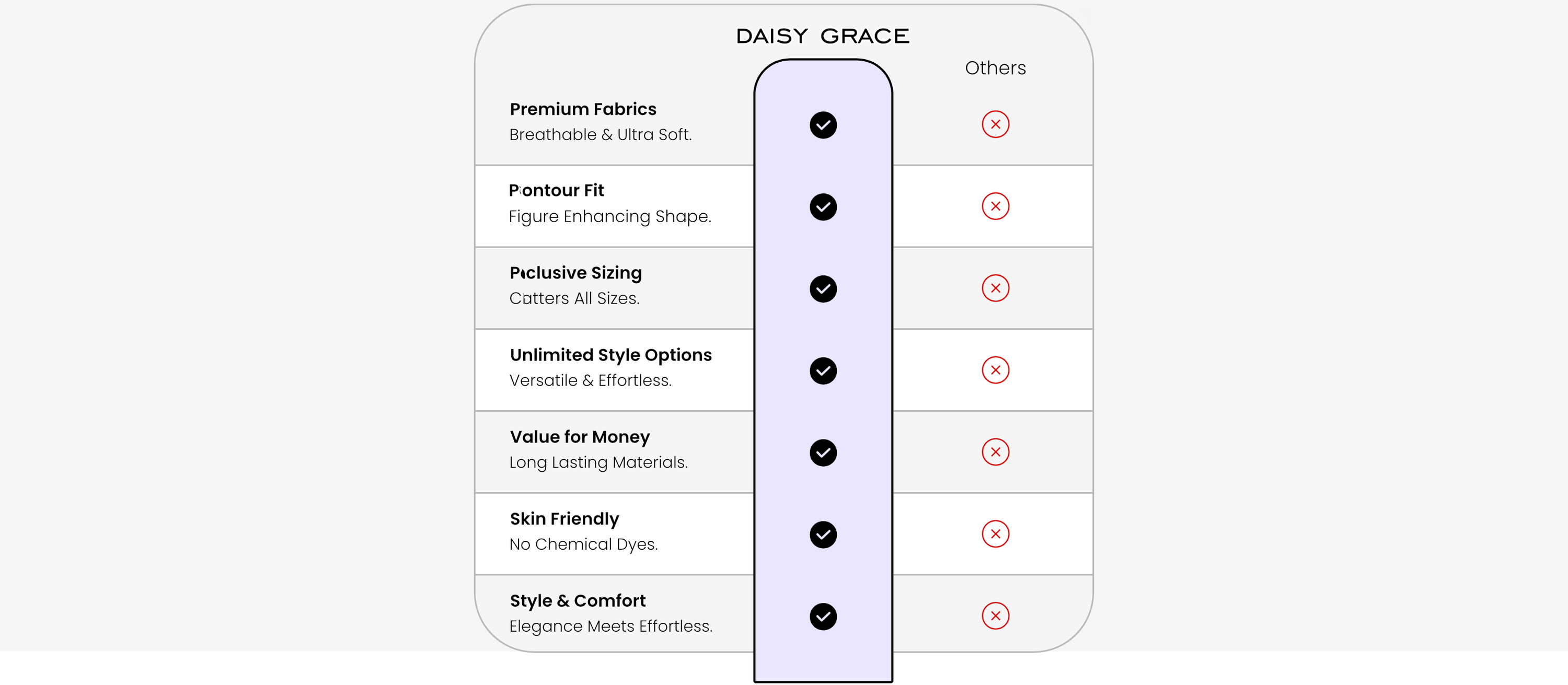 We aim to make all Daisy Grace products inclusive for all sizes, tall, short, curvy or petite.