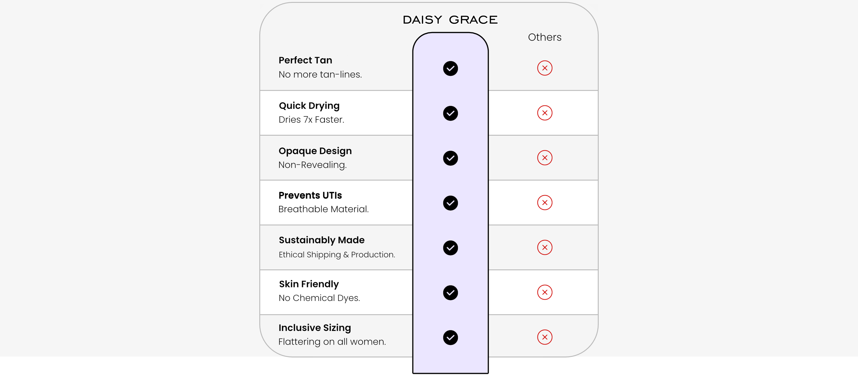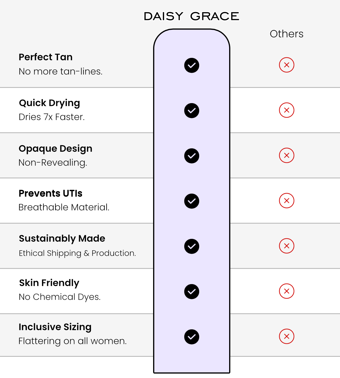 Our fast-drying feature also helps prevent UTIs caused by wet, damp swimwear, which is actually much more common than you would think!