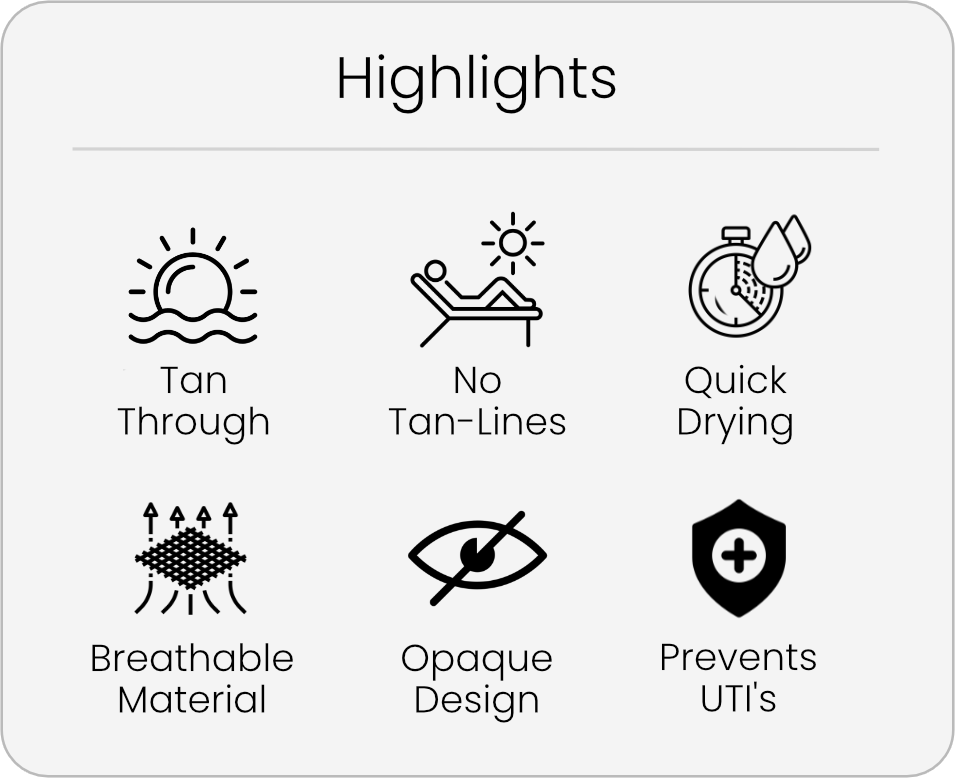Our fast-drying feature also helps prevent UTIs caused by wet, damp swimwear, which is actually much more common than you would think!